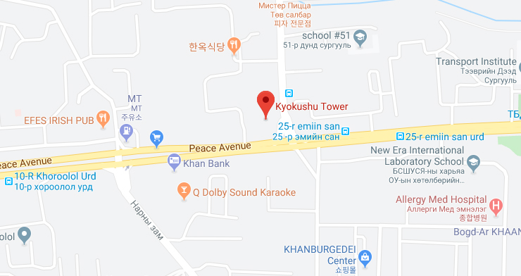 Kyokushu Tower 11F 1101, 10th Khoroolol, 6 khoroo, Bayangol Dist.,